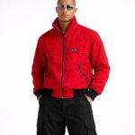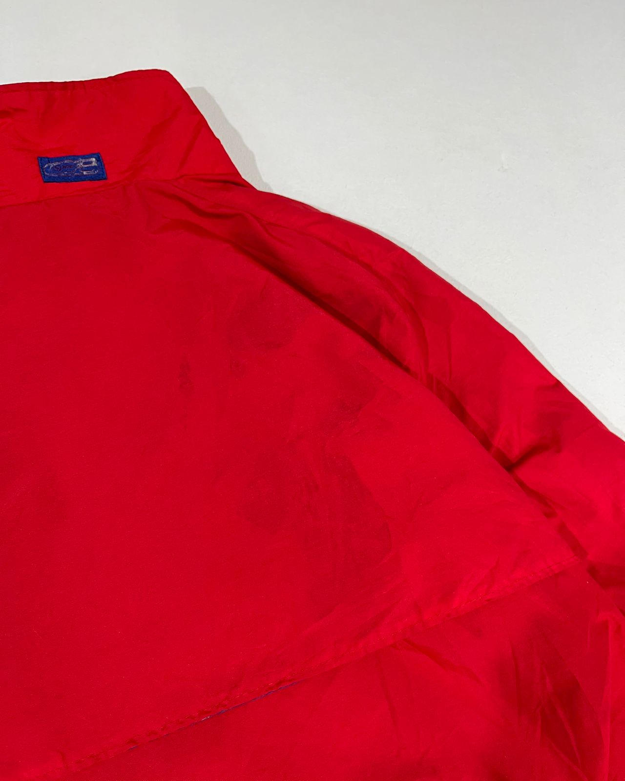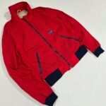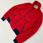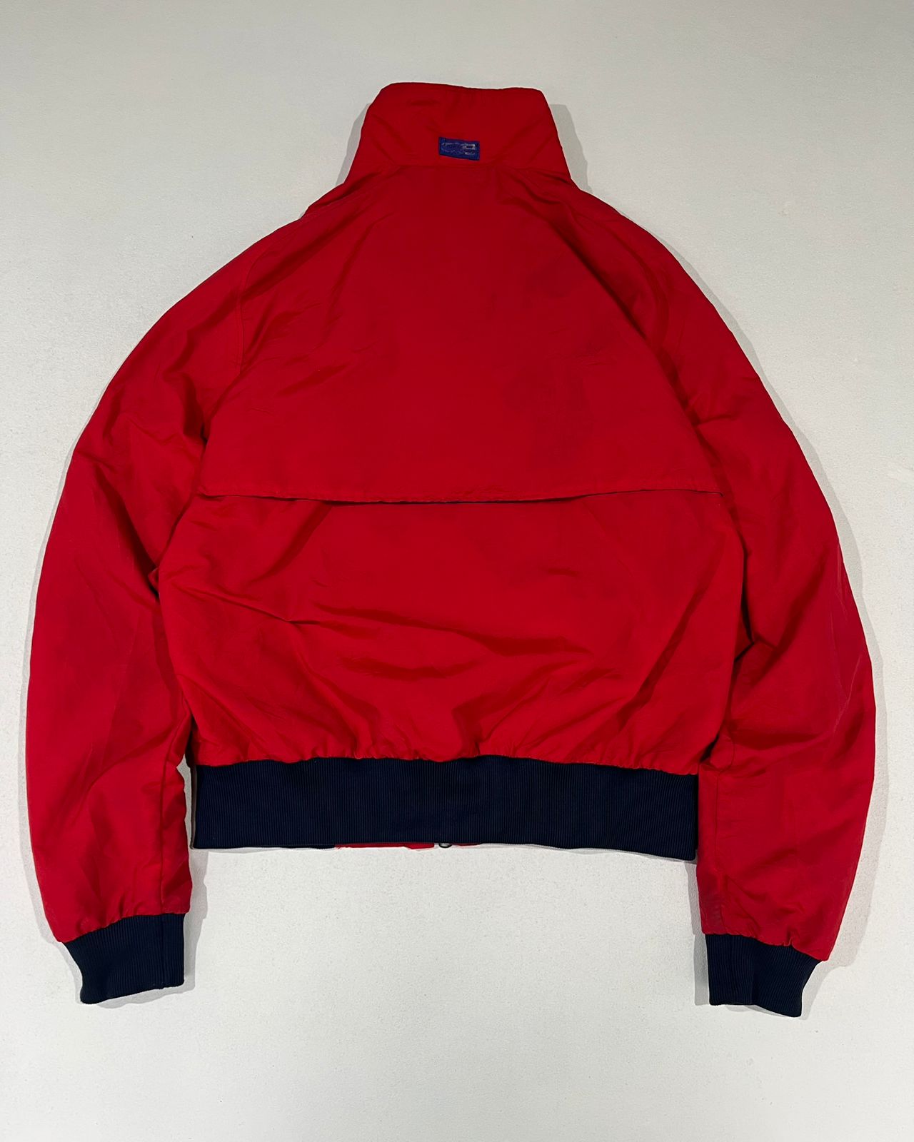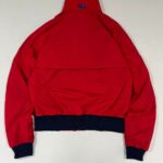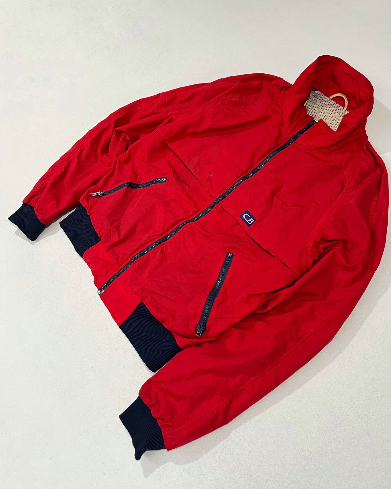 A bold vintage CB red windbreaker jacket with a clean body-fit silhouette. Features contrast navy ribbed cuffs and hem, zippered pockets, and breathable mesh lining. A classic 90s streetwear piece that pairs perfectly with cargo pants and sneakers for a modern retro look.