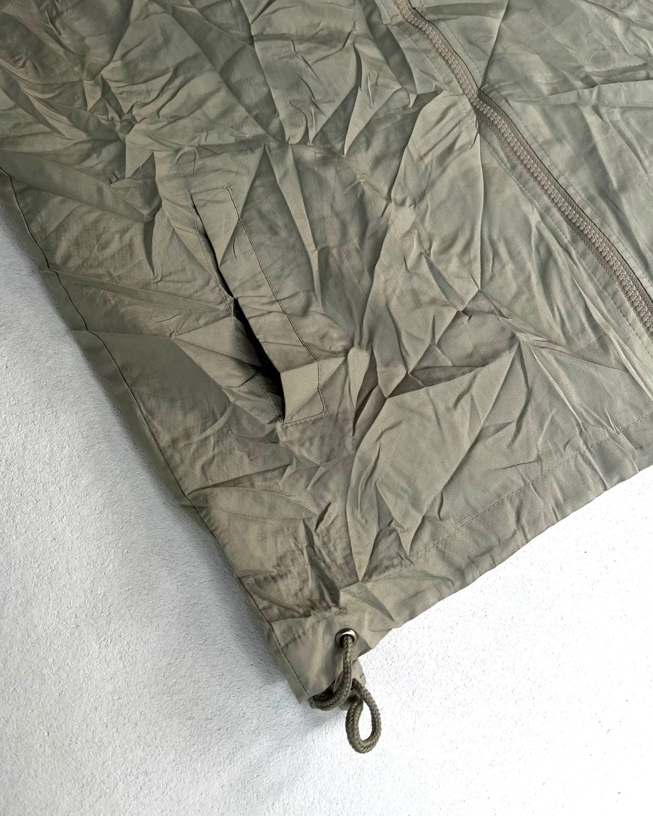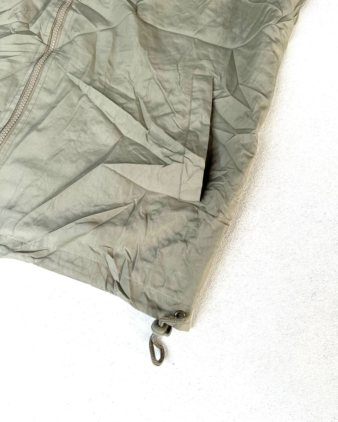 • Attached hood with drawstring adjusters